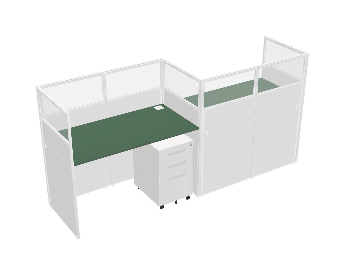 Green Rectangular Cubicle Workstations For 2 - Zigzag Formation + White Metal Mobile Drawers