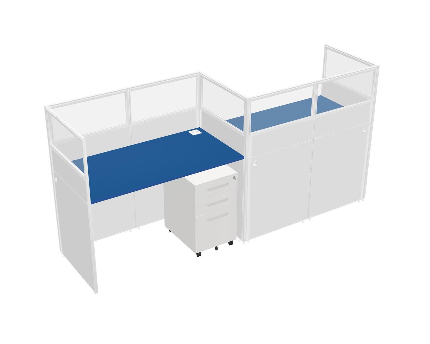 Prism Blue Rectangular Cubicle Workstations For 2 - Zigzag Formation + White Metal Mobile Drawers