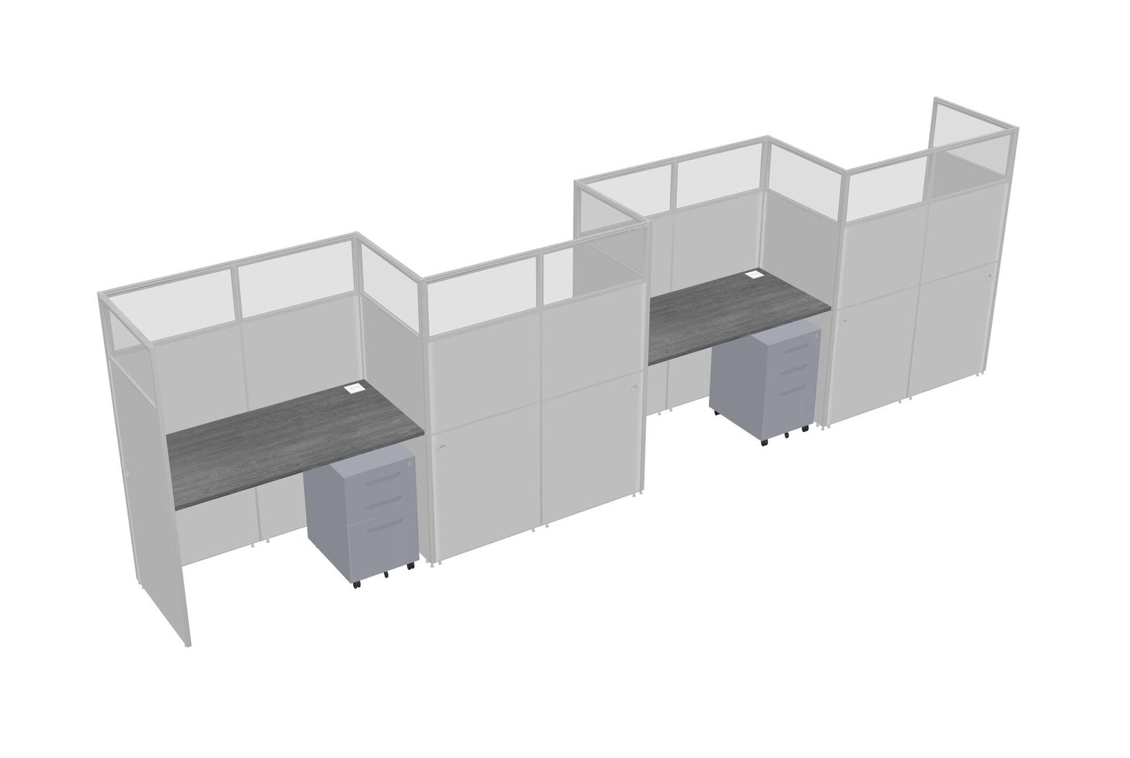 Grey Rectangular Cubicle Workstations For 4 - Zigzag Formation + Grey Metal Mobile Drawers