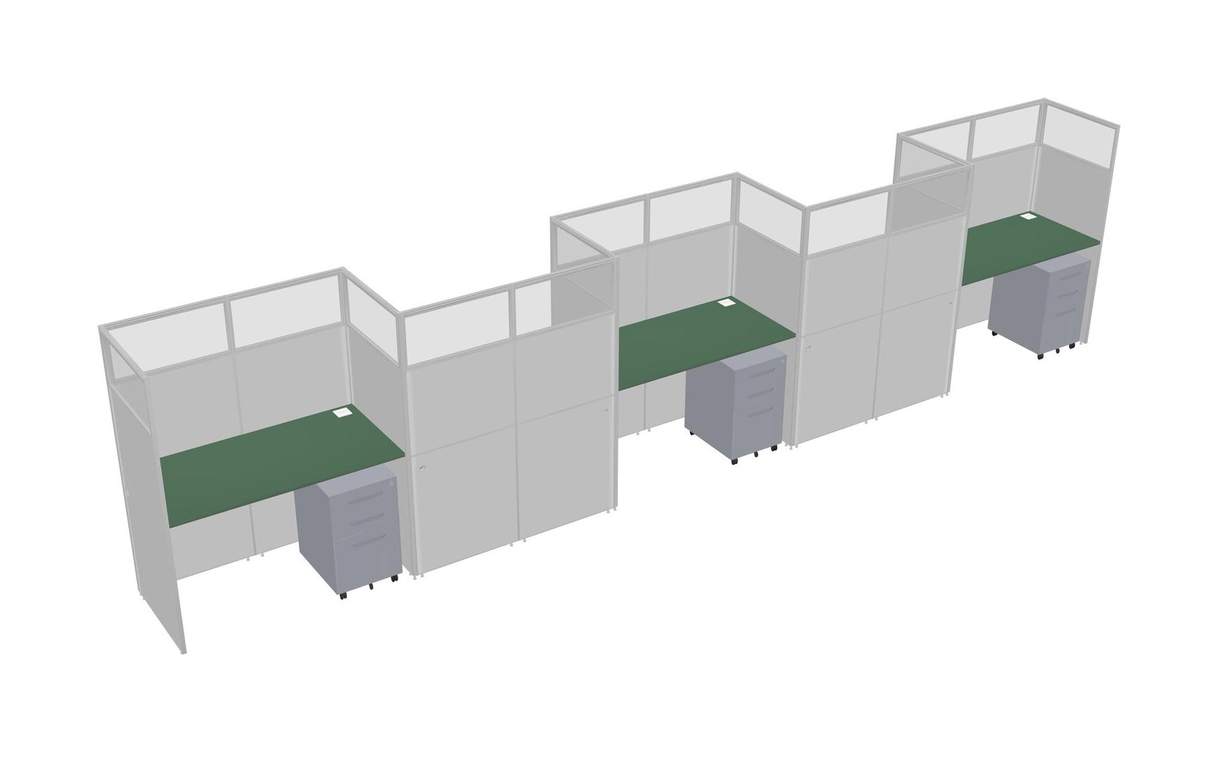 Green Rectangular Cubicle Workstations For 5 - Zigzag Formation + Grey Metal Mobile Drawers