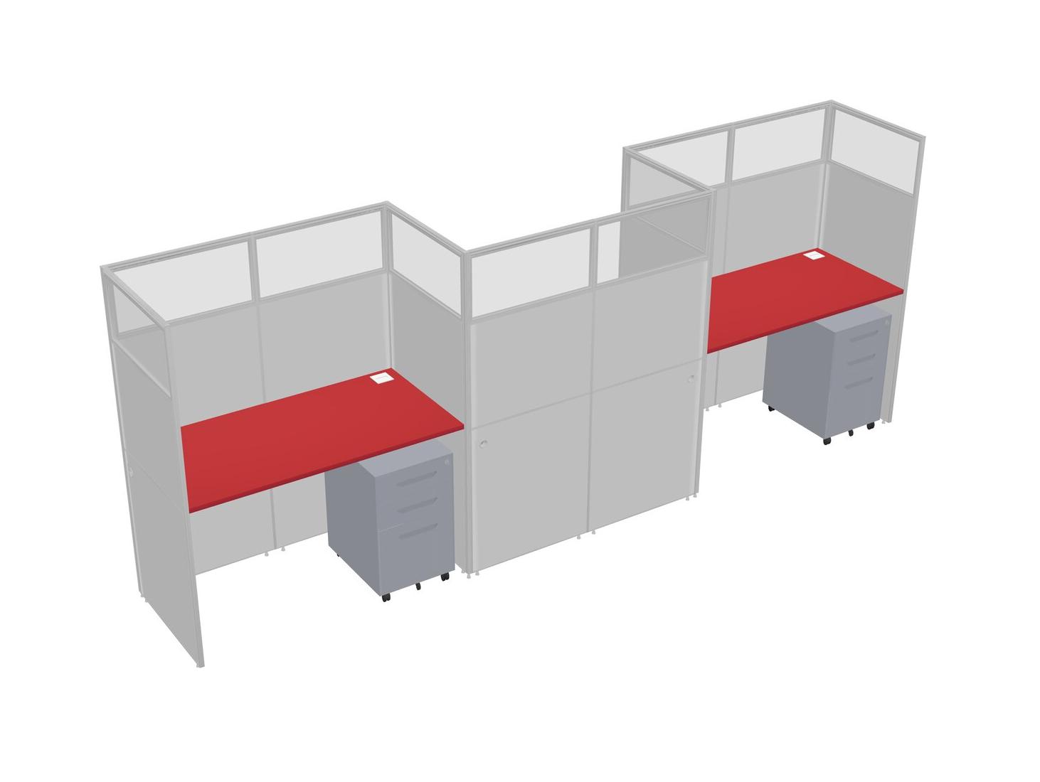 Prism Red Rectangular Cubicle Workstations For 3 - Zigzag Formation + Grey Metal Mobile Drawers