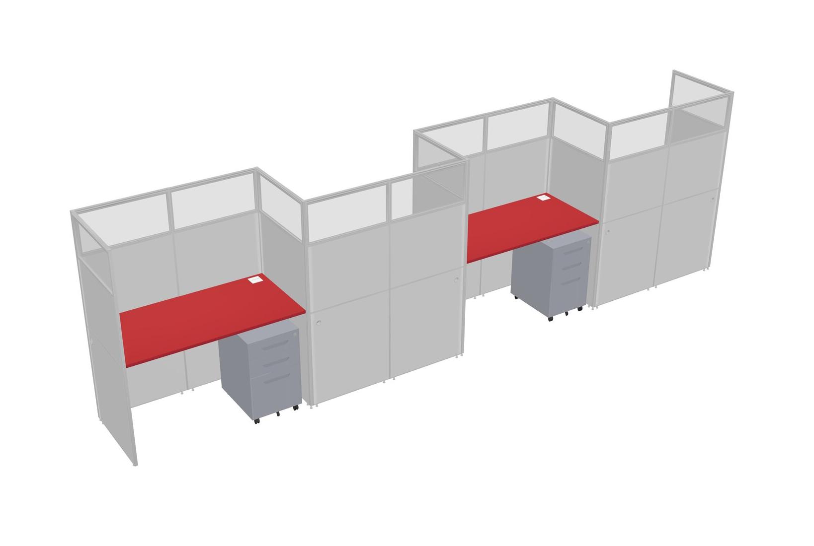 Prism Red Rectangular Cubicle Workstations For 4 - Zigzag Formation + Grey Metal Mobile Drawers