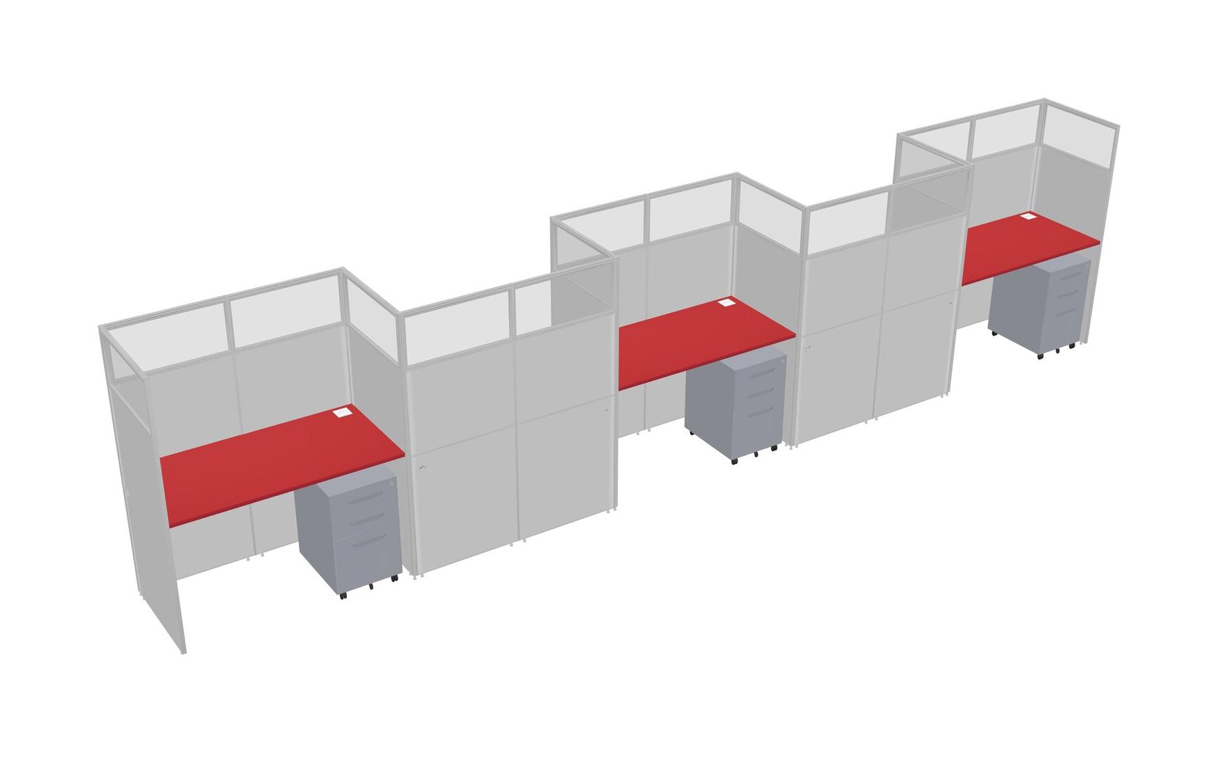Prism Red Rectangular Cubicle Workstations For 5 - Zigzag Formation + Grey Metal Mobile Drawers