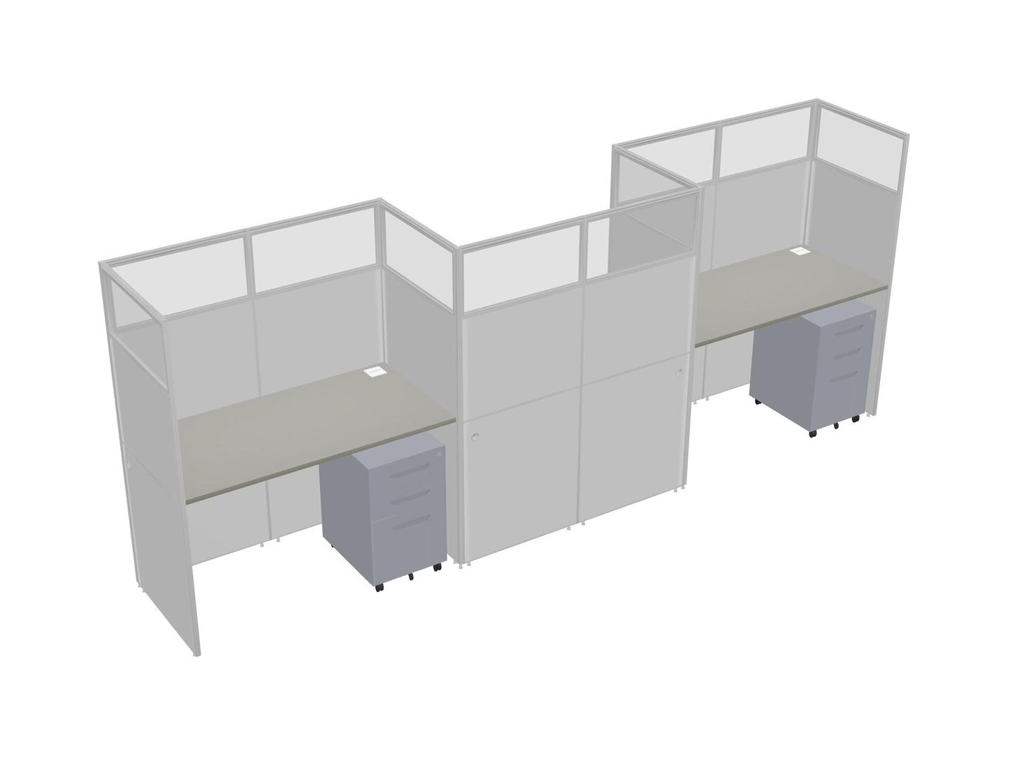 Grey Shadows Rectangular Cubicle Workstations For 3 - Zigzag Formation + Grey Metal Mobile Drawers
