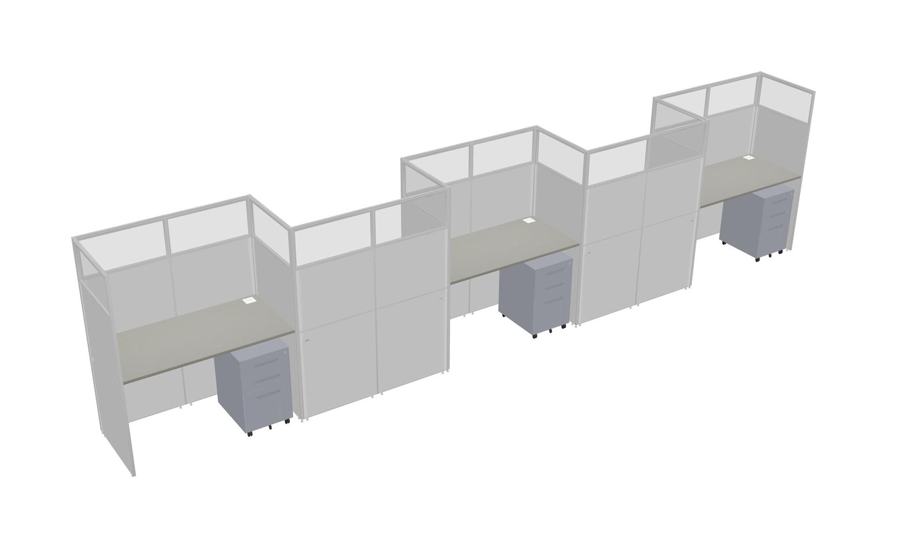 Grey Shadows Rectangular Cubicle Workstations For 5 - Zigzag Formation + Grey Metal Mobile Drawers