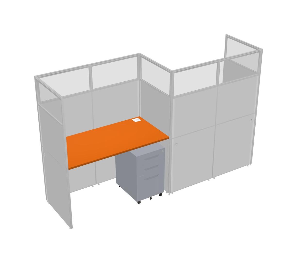 Orange Rectangular Cubicle Workstations For 2 - Zigzag Formation + Grey Metal Mobile Drawers