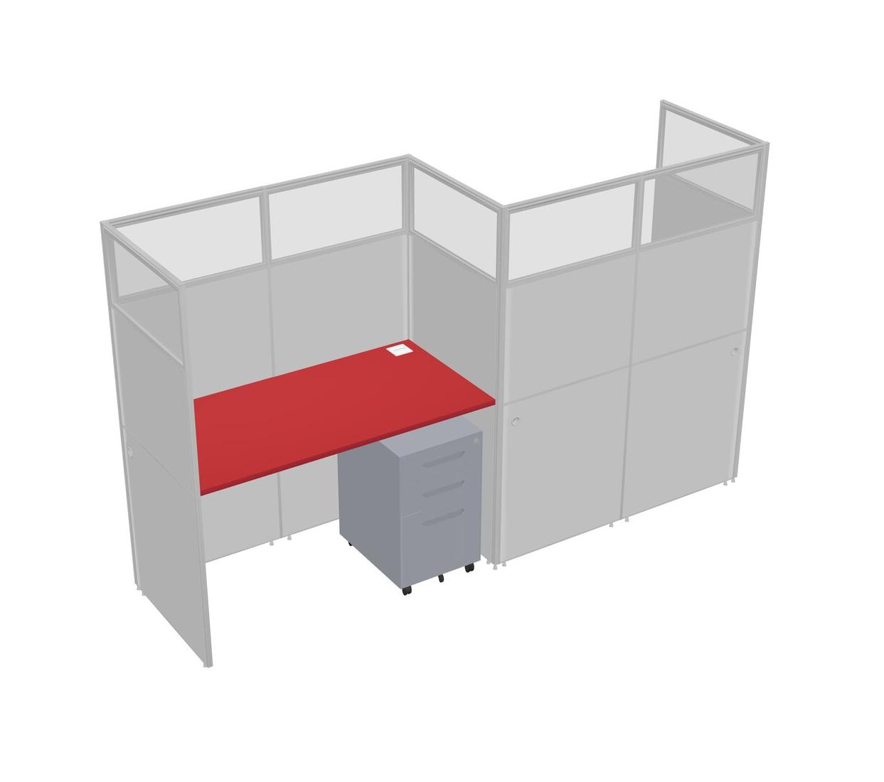 Prism Red Rectangular Cubicle Workstations For 2 - Zigzag Formation + Grey Metal Mobile Drawers