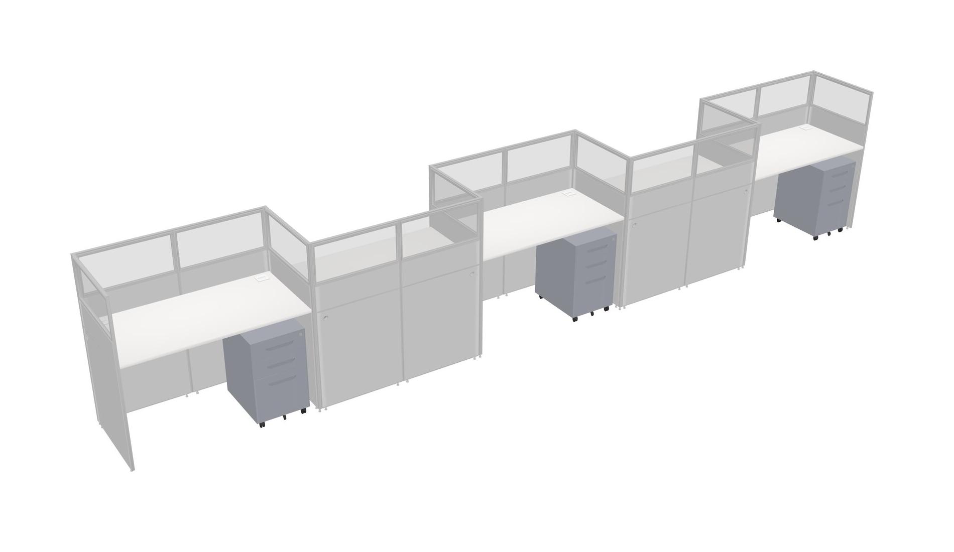 White Rectangular Cubicle Workstations For 5 - Zigzag Formation + Grey Metal Mobile Drawers