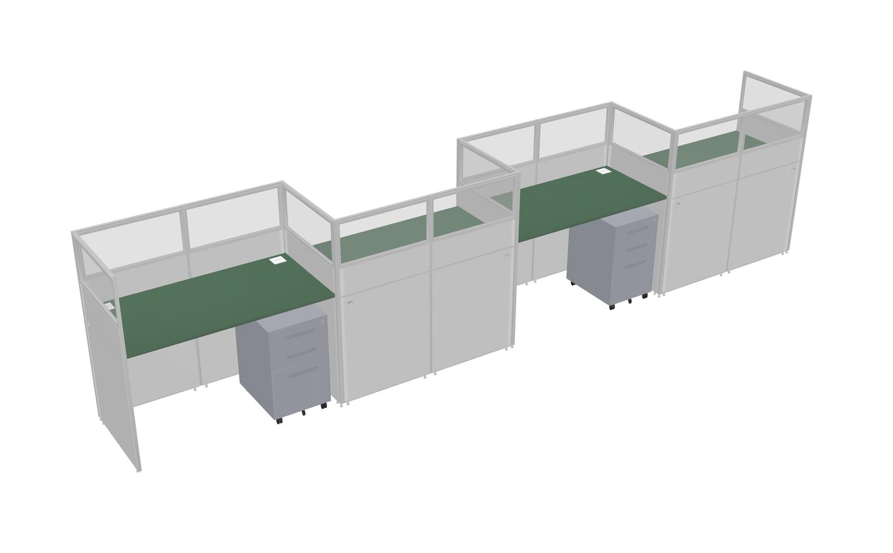 Green Rectangular Cubicle Workstations For 4 - Zigzag Formation + Grey Metal Mobile Drawers