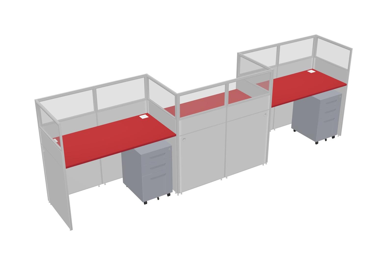Prism Red Rectangular Cubicle Workstations For 3 - Zigzag Formation + Grey Metal Mobile Drawers