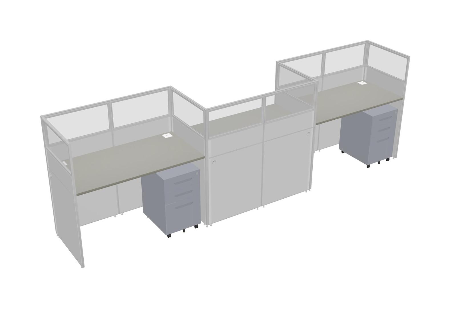Grey Shadows Rectangular Cubicle Workstations For 3 - Zigzag Formation + Grey Metal Mobile Drawers