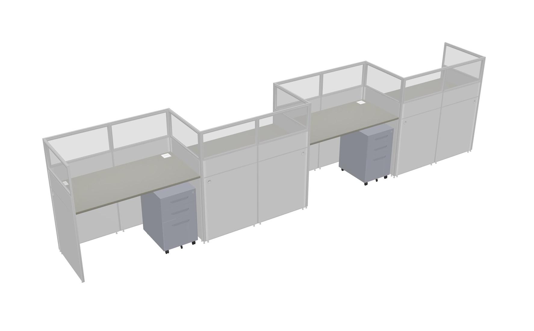Grey Shadows Rectangular Cubicle Workstations For 4 - Zigzag Formation + Grey Metal Mobile Drawers