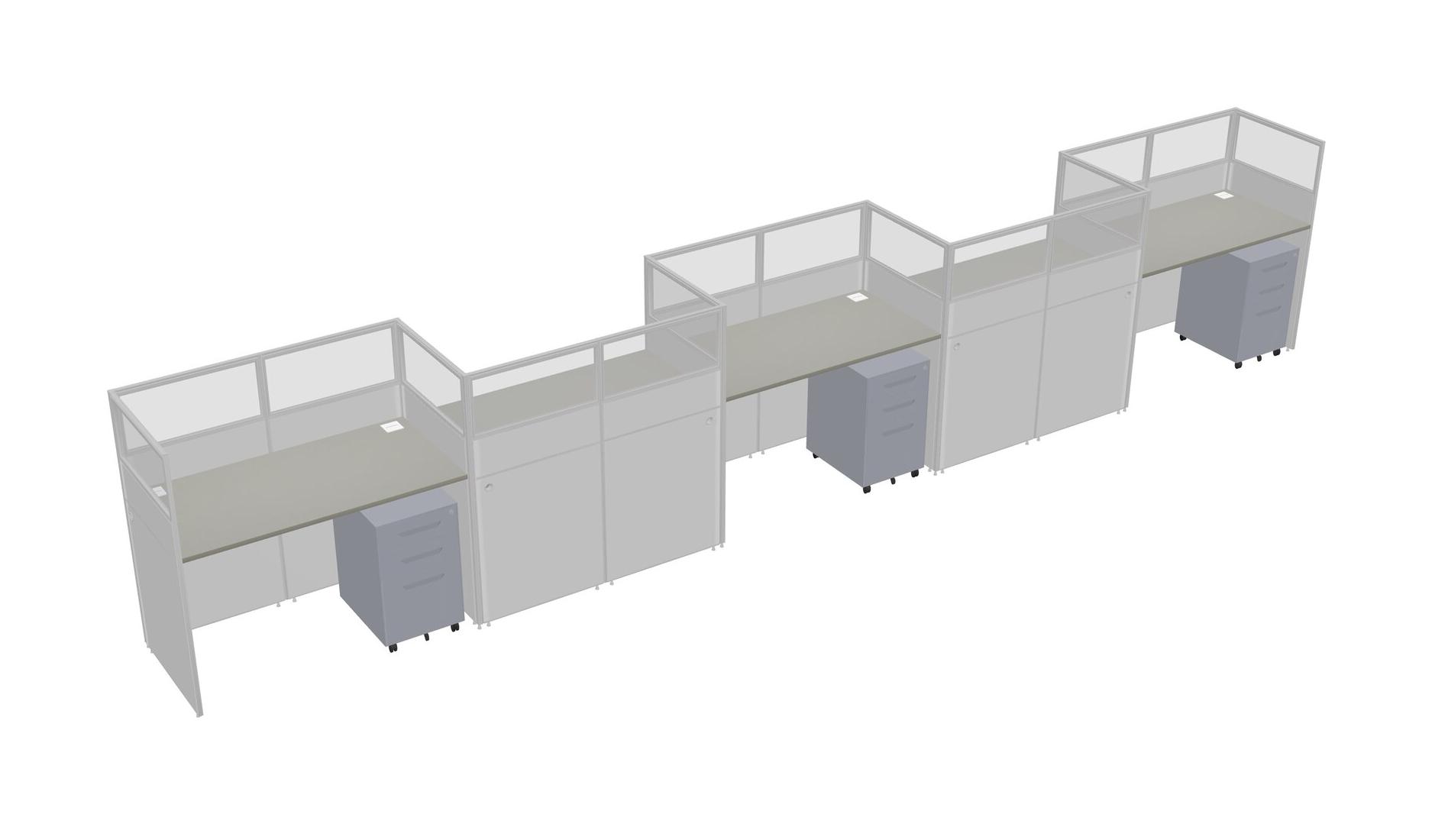 Grey Shadows Rectangular Cubicle Workstations For 5 - Zigzag Formation + Grey Metal Mobile Drawers