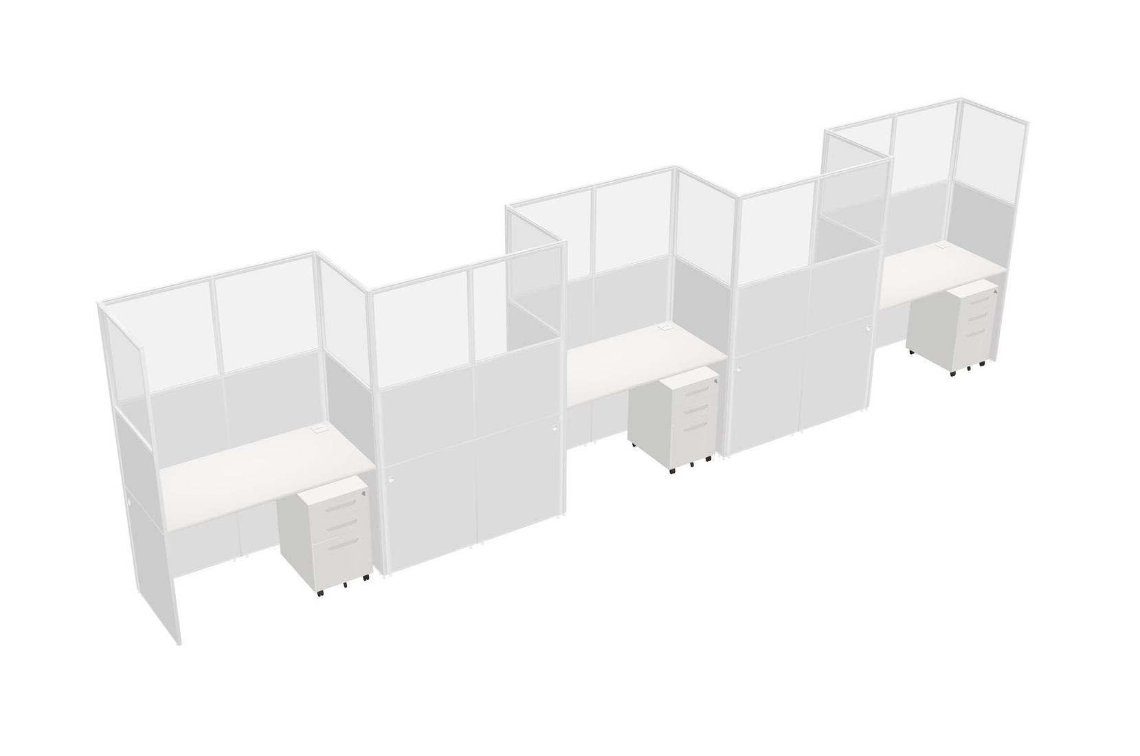 White Rectangular Cubicle Workstations For 5 - Zigzag Formation + White Metal Mobile Drawers
