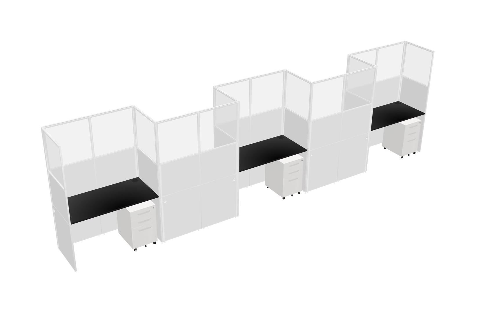 Black Rectangular Cubicle Workstations For 5 - Zigzag Formation + White Metal Mobile Drawers