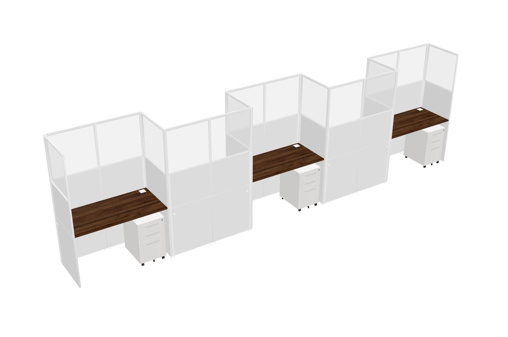 Columbia Walnut Rectangular Cubicle Workstations For 5 - Zigzag Formation + White Metal Mobile Drawers