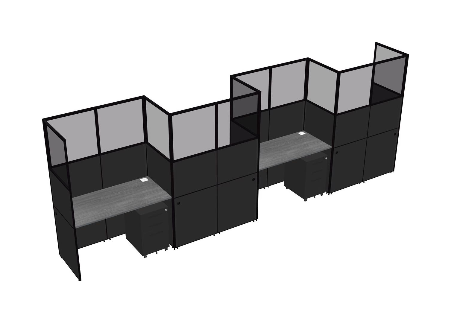 Grey Rectangular Cubicle Workstations For 4 - Zigzag Formation + Black Metal Mobile Drawers