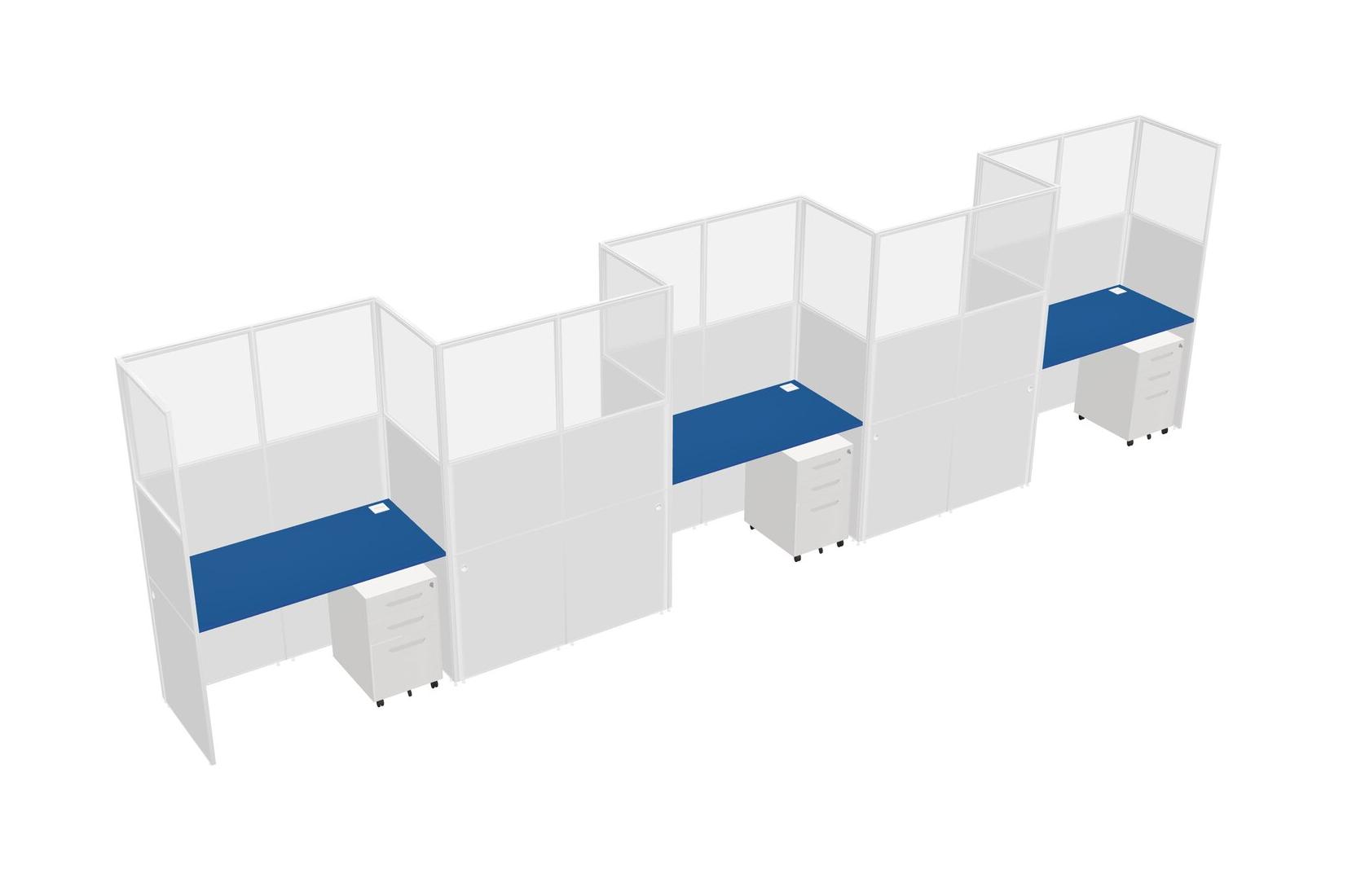 Prism Blue Rectangular Cubicle Workstations For 5 - Zigzag Formation + White Metal Mobile Drawers