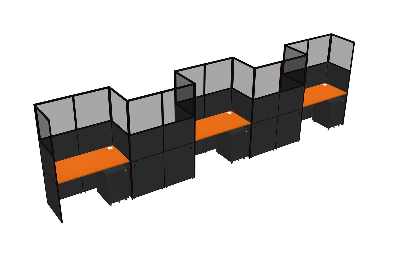 Orange Rectangular Cubicle Workstations For 5 - Zigzag Formation + Black Metal Mobile Drawers