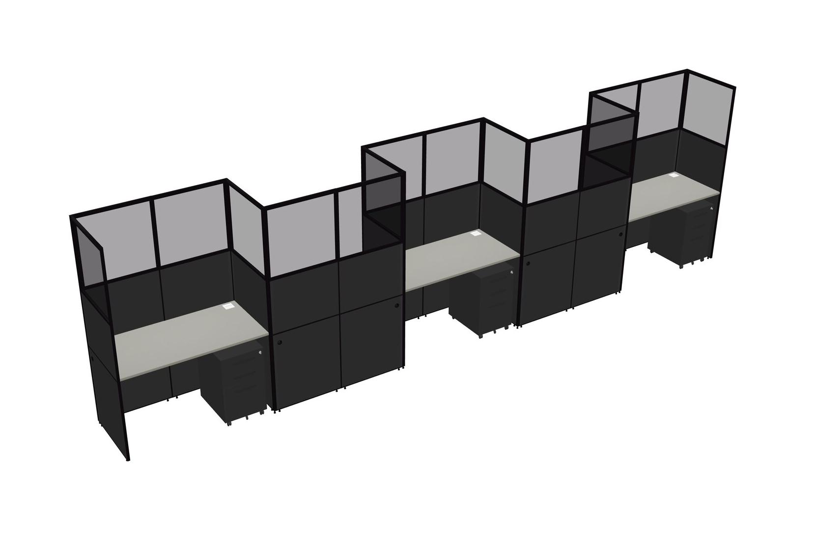 Grey Shadows Rectangular Cubicle Workstations For 5 - Zigzag Formation + Black Metal Mobile Drawers