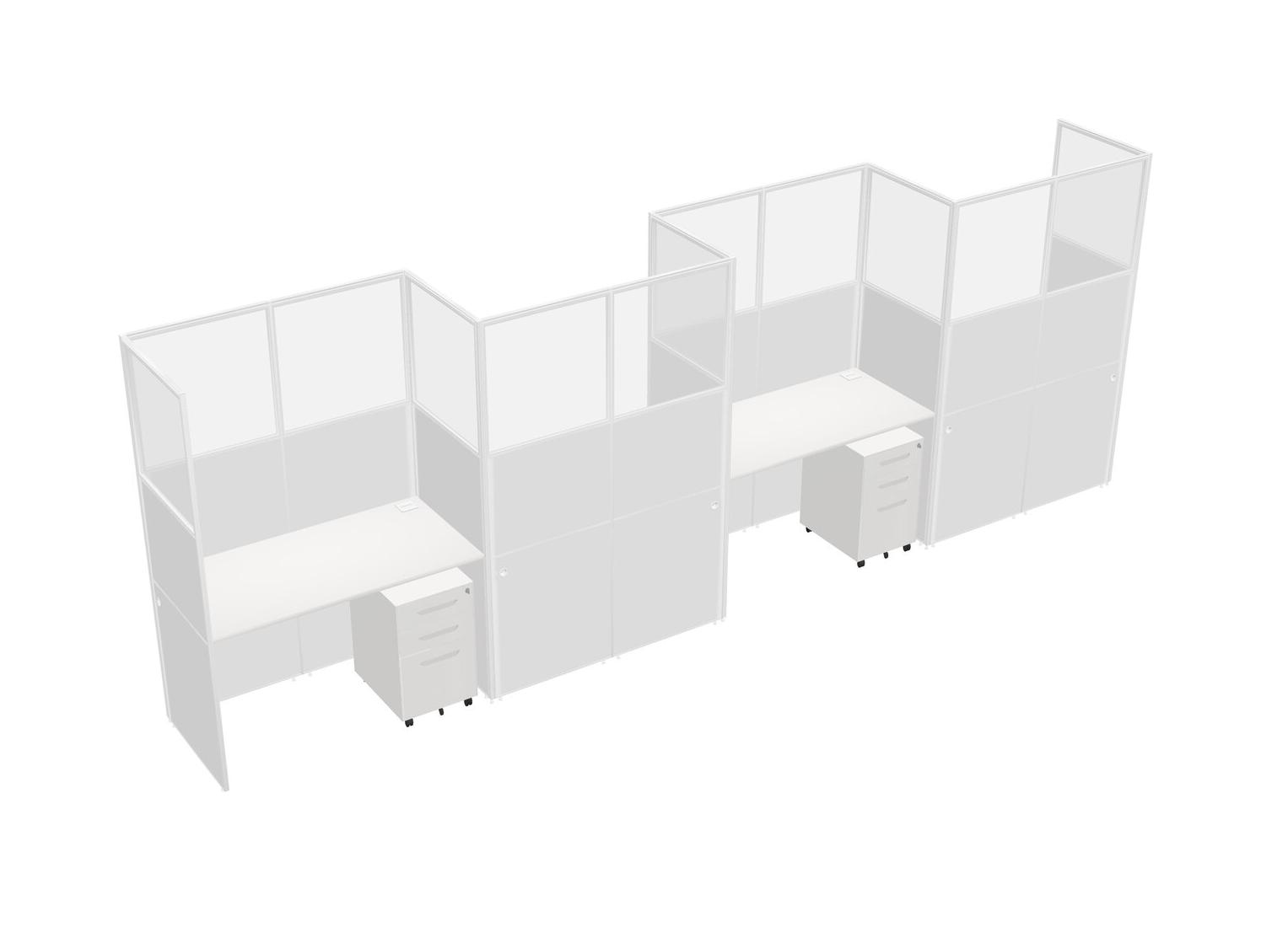 White Rectangular Cubicle Workstations For 4 - Zigzag Formation + White Metal Mobile Drawers
