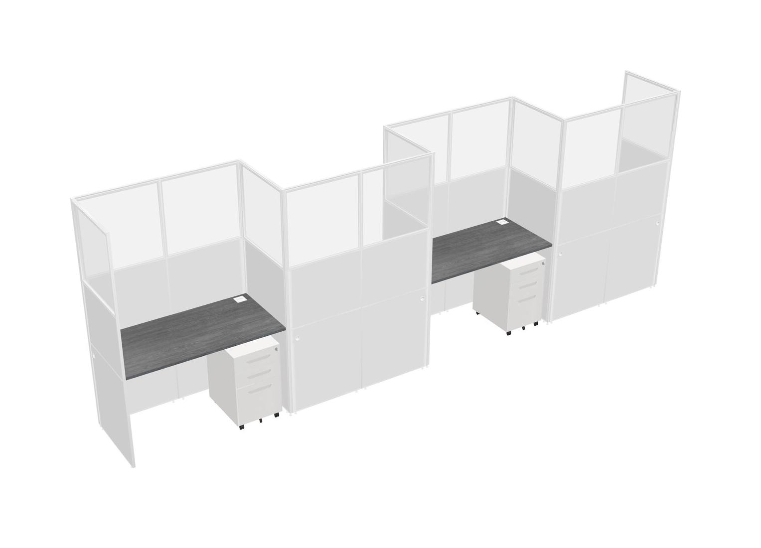 Grey Rectangular Cubicle Workstations For 4 - Zigzag Formation + White Metal Mobile Drawers
