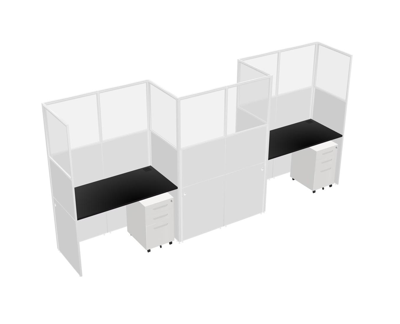 Black Rectangular Cubicle Workstations For 3 - Zigzag Formation + White Metal Mobile Drawers