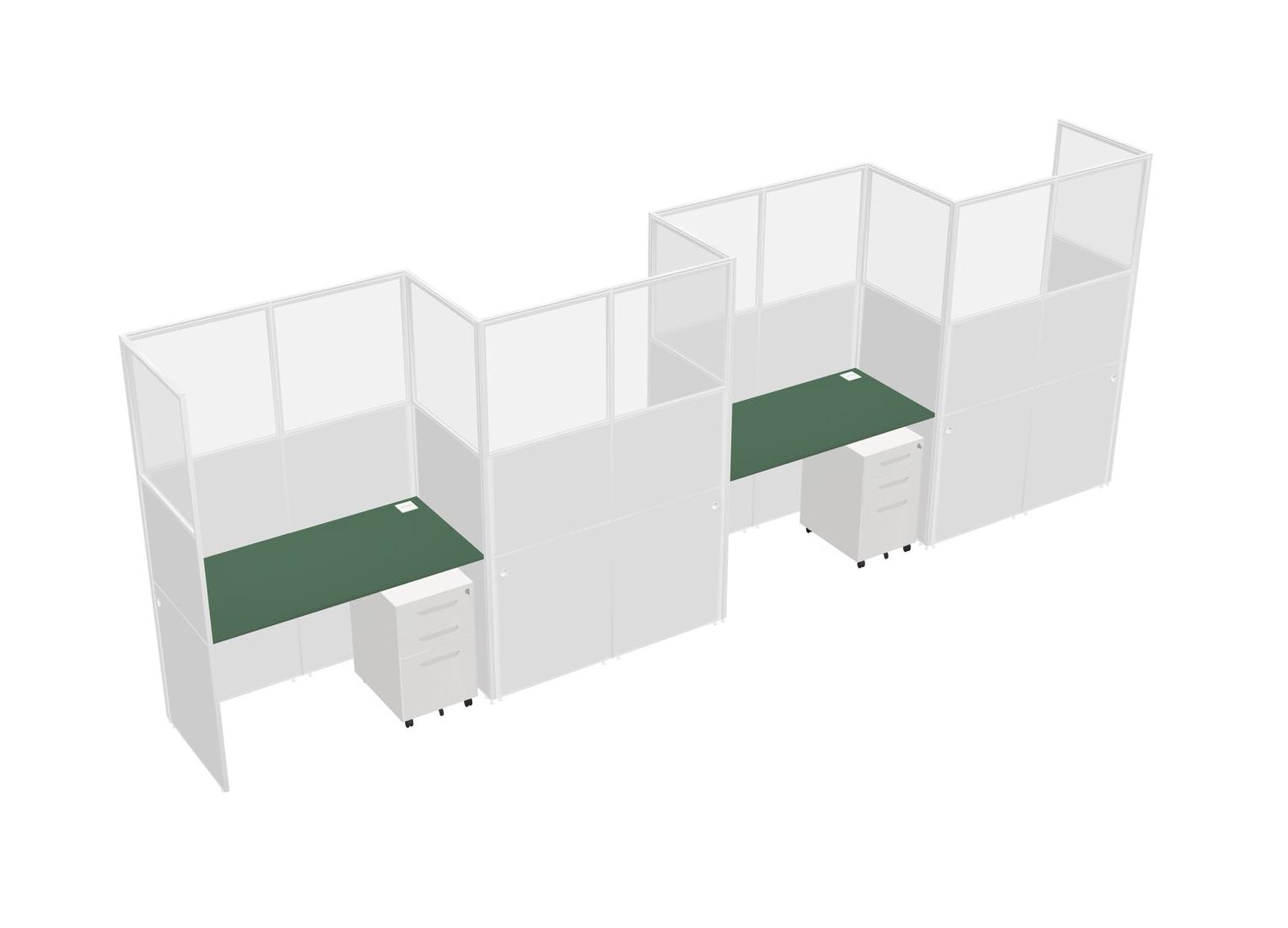 Green Rectangular Cubicle Workstations For 4 - Zigzag Formation + White Metal Mobile Drawers