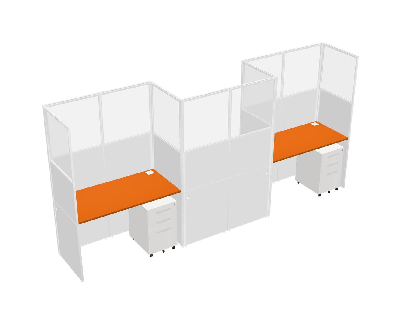 Orange Rectangular Cubicle Workstations For 3 - Zigzag Formation + White Metal Mobile Drawers