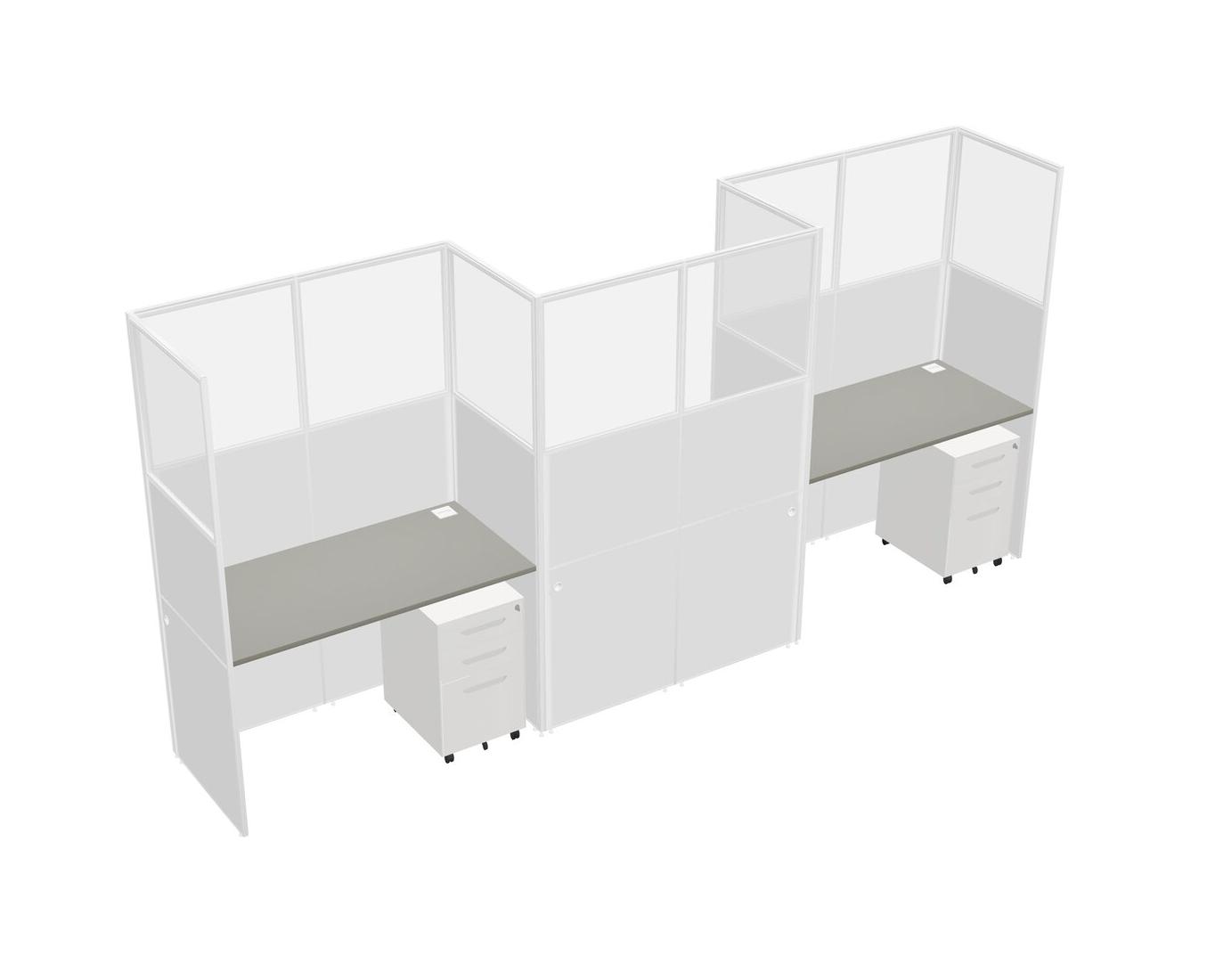 Grey Shadows Rectangular Cubicle Workstations For 3 - Zigzag Formation + White Metal Mobile Drawers