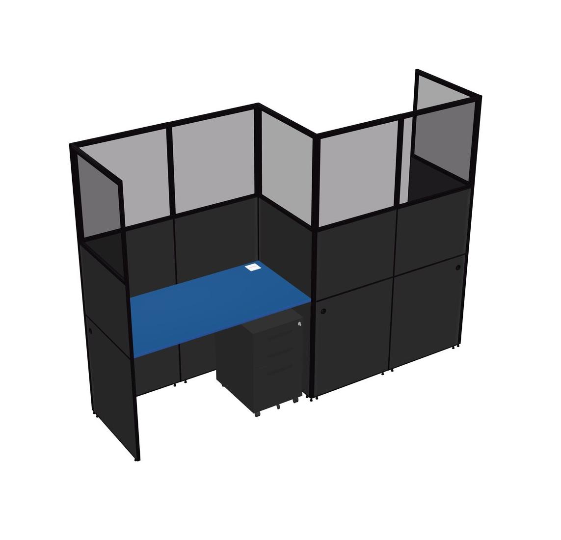Prism Blue Rectangular Cubicle Workstations For 2 - Zigzag Formation + Black Metal Mobile Drawers