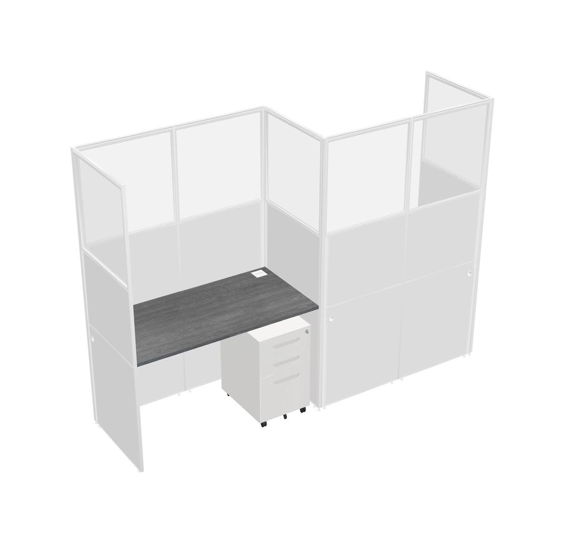 Grey Rectangular Cubicle Workstations For 2 - Zigzag Formation + White Metal Mobile Drawers