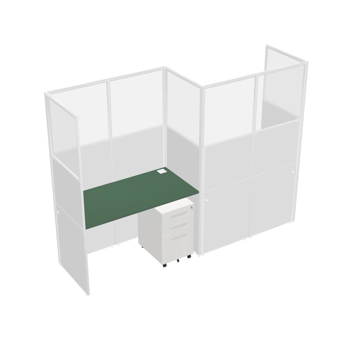 Green Rectangular Cubicle Workstations For 2 - Zigzag Formation + White Metal Mobile Drawers