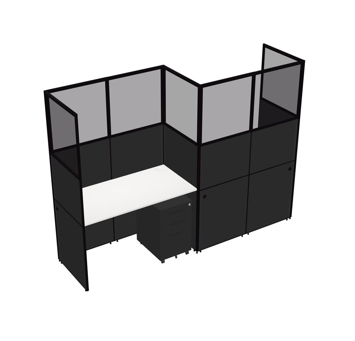 White Rectangular Cubicle Workstations For 2 - Zigzag Formation + Black Metal Mobile Drawers