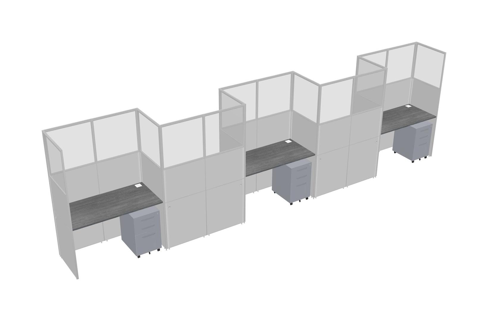 Grey Rectangular Cubicle Workstations For 5 - Zigzag Formation + Grey Metal Mobile Drawers