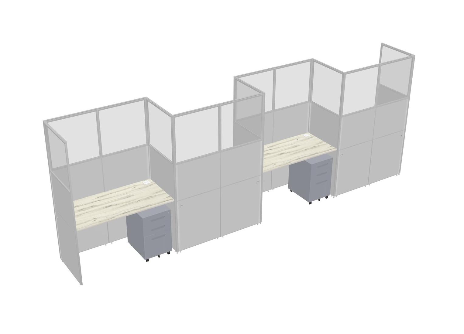 Heinne Holz Rectangular Cubicle Workstations For 4 - Zigzag Formation + Grey Metal Mobile Drawers