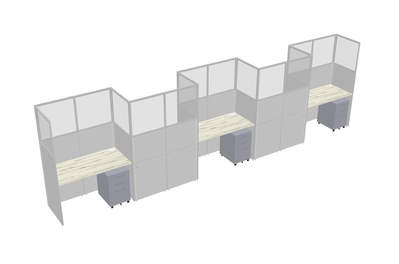 Heinne Holz Rectangular Cubicle Workstations For 5 - Zigzag Formation + Grey Metal Mobile Drawers