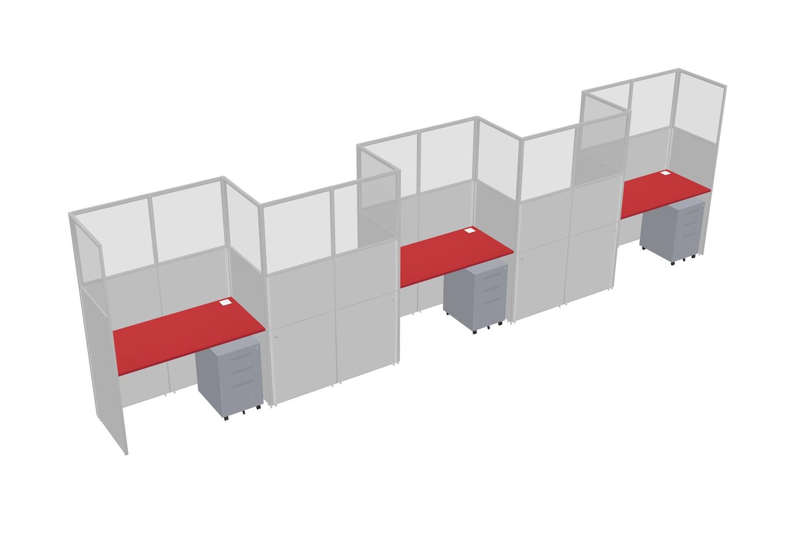 Prism Red Rectangular Cubicle Workstations For 5 - Zigzag Formation + Grey Metal Mobile Drawers