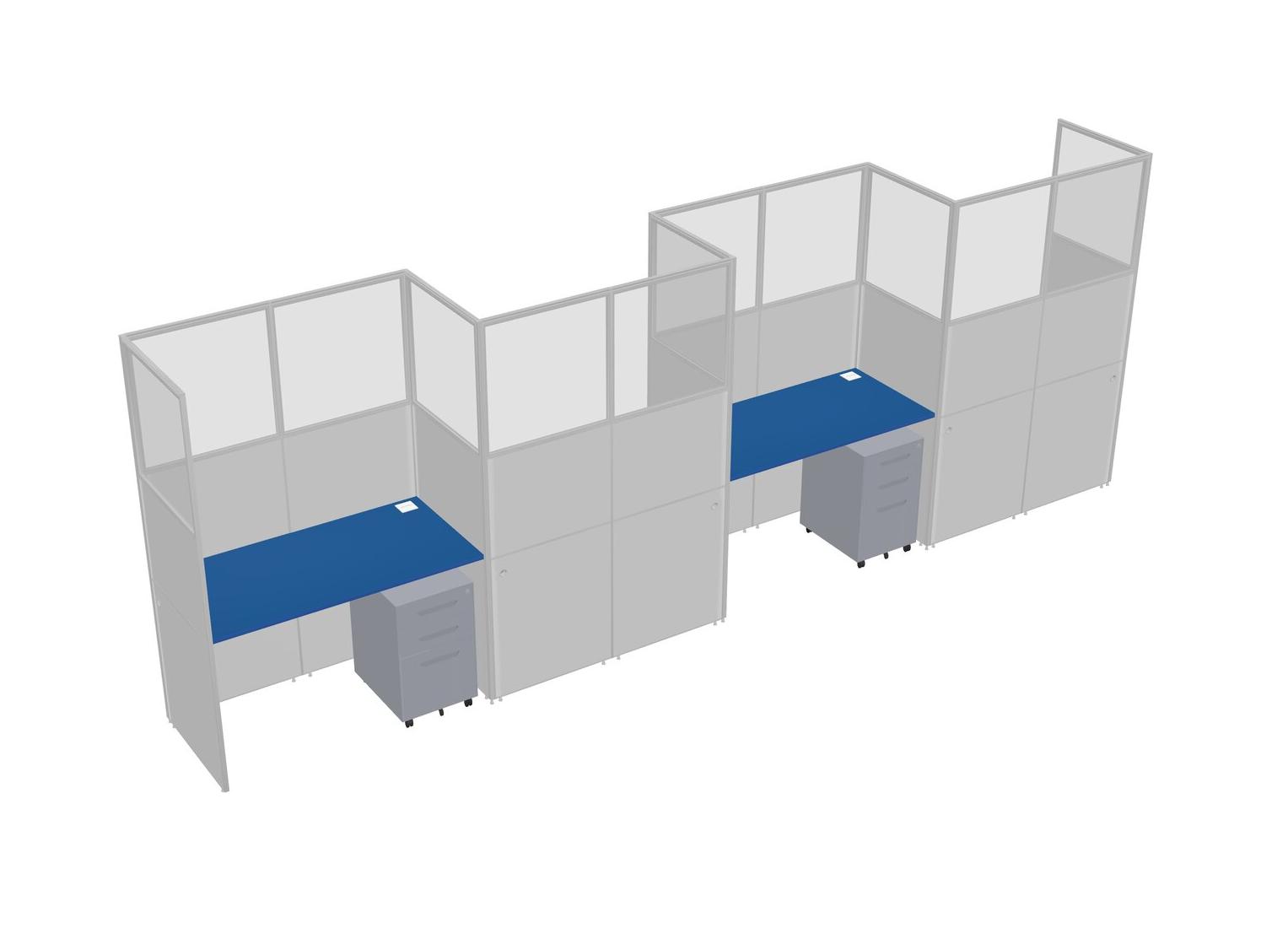 Prism Blue Rectangular Cubicle Workstations For 4 - Zigzag Formation + Grey Metal Mobile Drawers