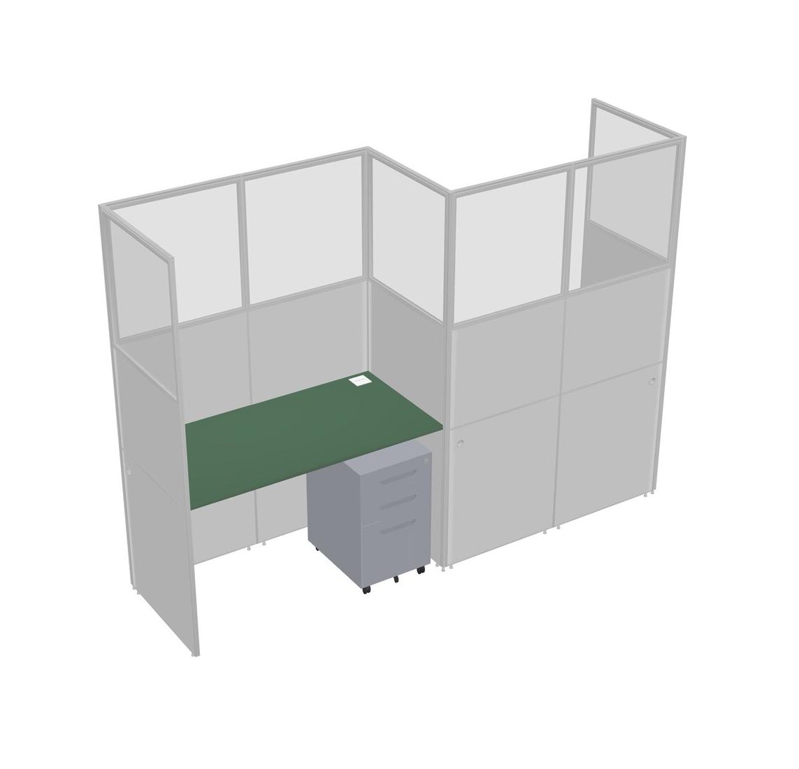 Green Rectangular Cubicle Workstations For 2 - Zigzag Formation + Grey Metal Mobile Drawers