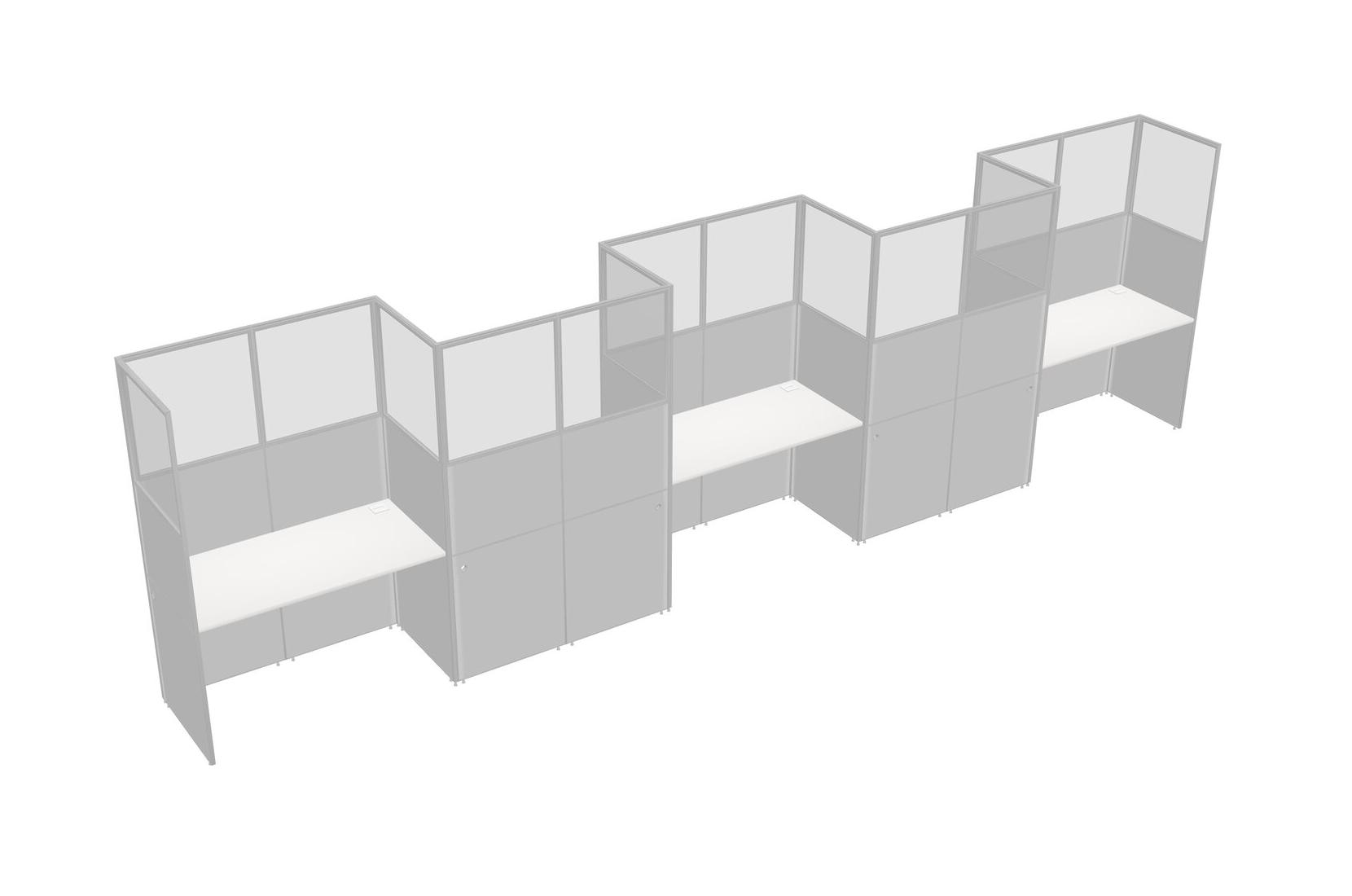 White Rectangular Cubicle Workstations For 5 - Zigzag Formation