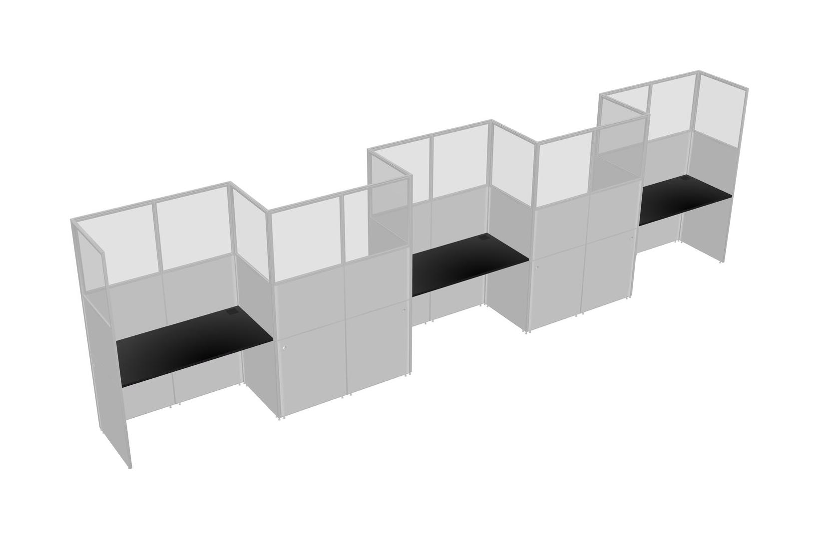 Black Rectangular Cubicle Workstations For 5 - Zigzag Formation