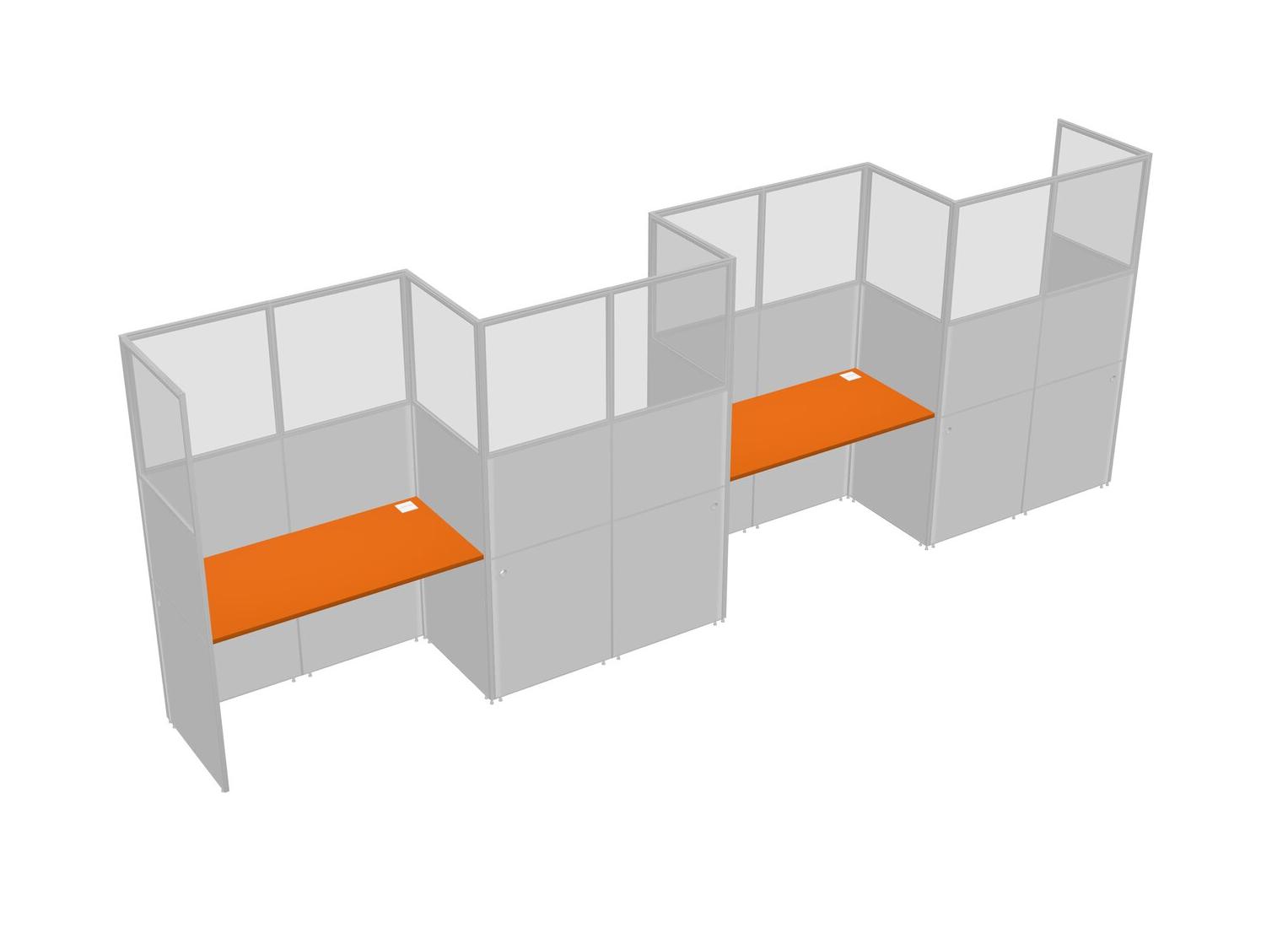 Orange Rectangular Cubicle Workstations For 4 - Zigzag Formation