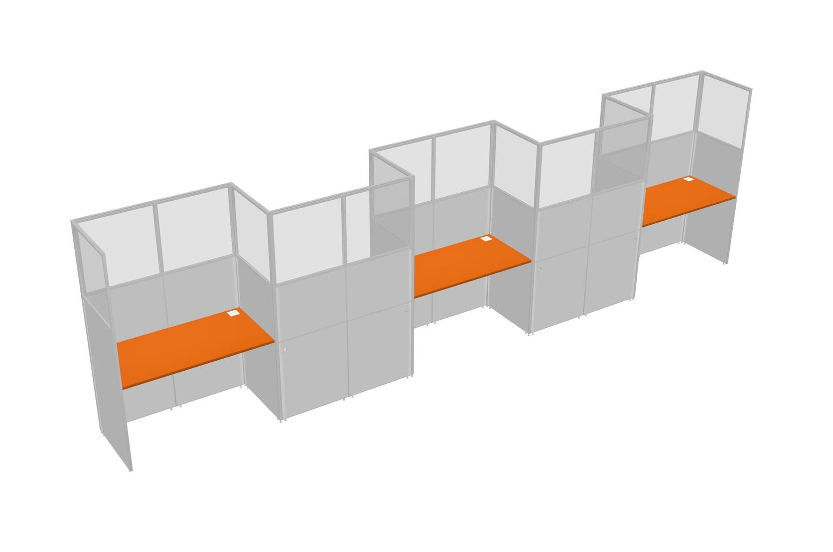 Orange Rectangular Cubicle Workstations For 5 - Zigzag Formation