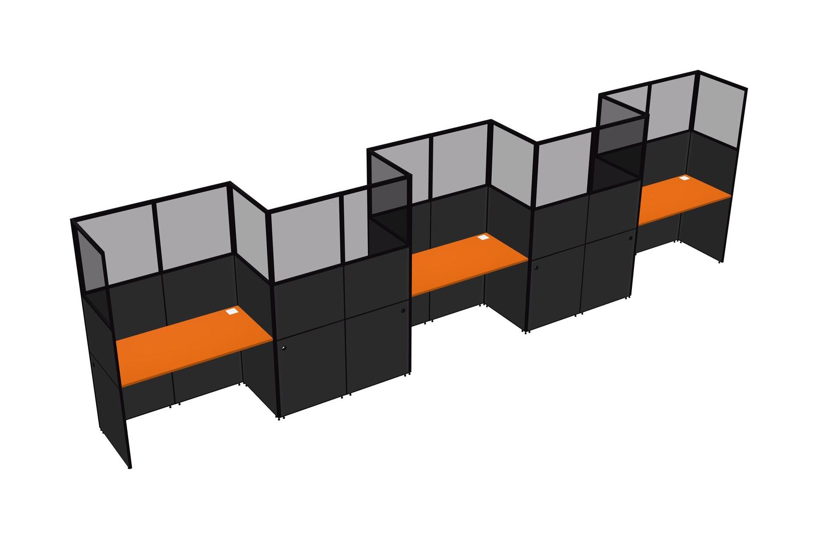 Orange Rectangular Cubicle Workstations For 5 - Zigzag Formation