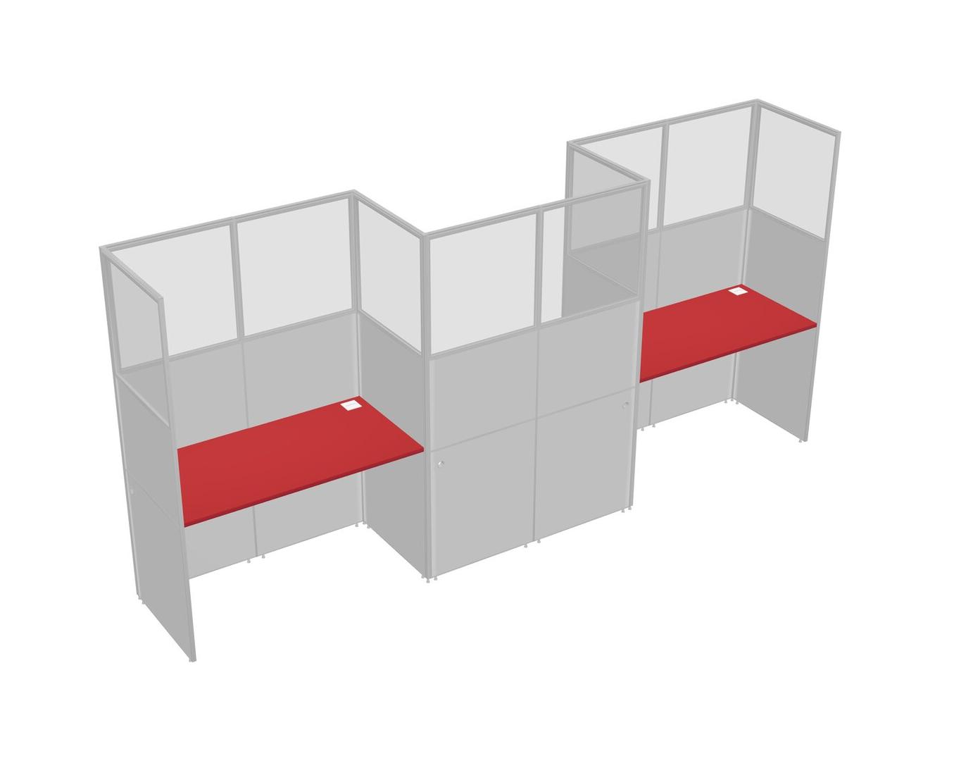 Prism Red Rectangular Cubicle Workstations For 3 - Zigzag Formation