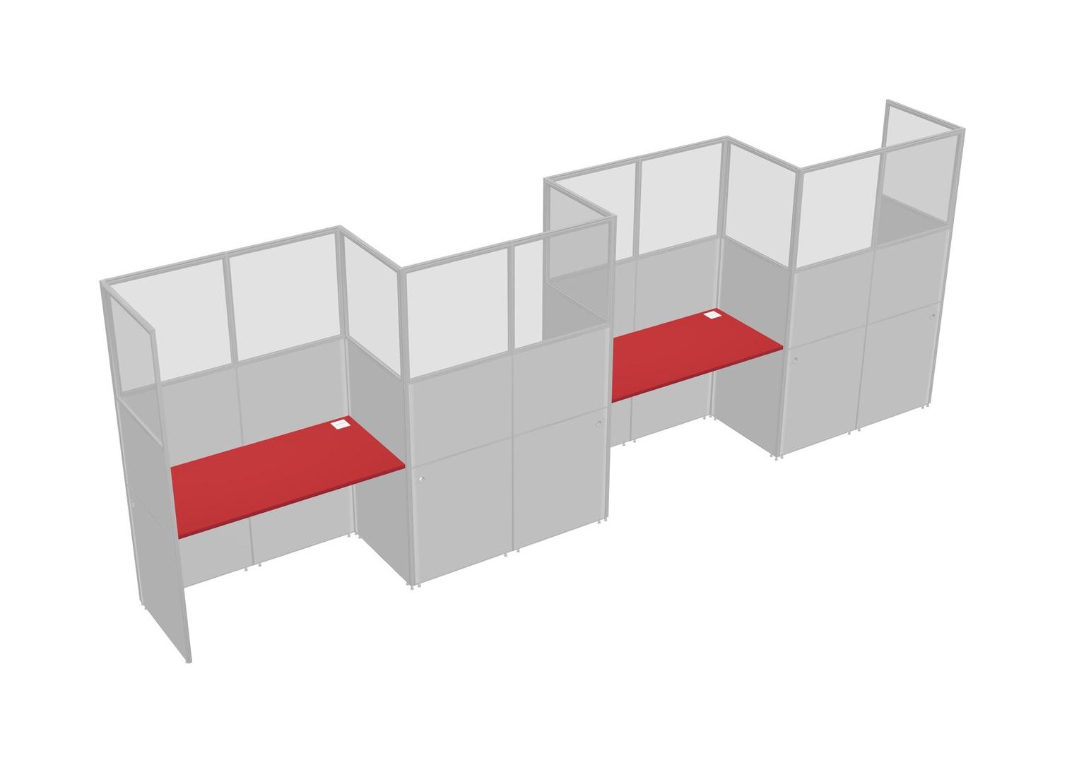 Prism Red Rectangular Cubicle Workstations For 4 - Zigzag Formation