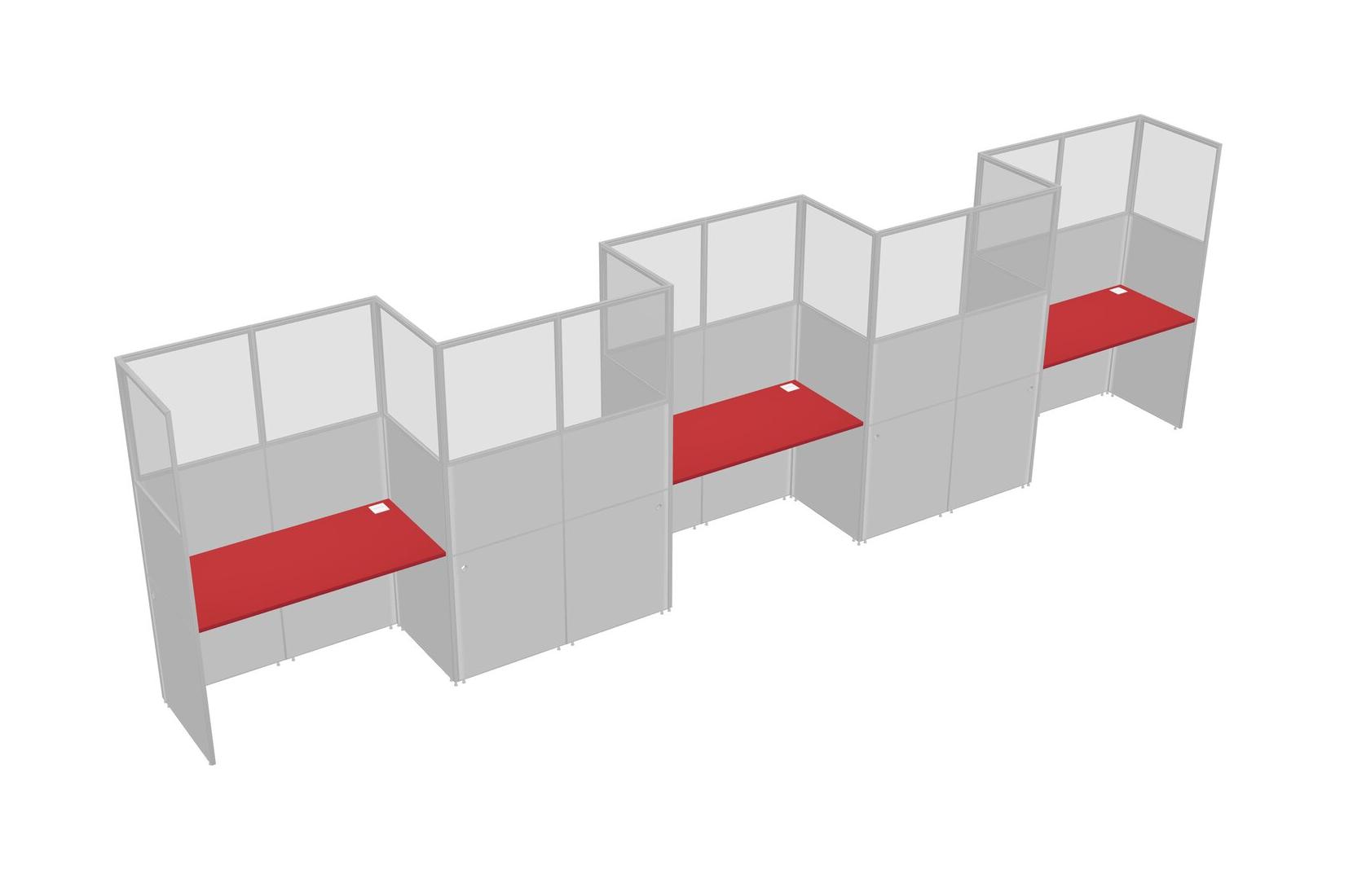 Prism Red Rectangular Cubicle Workstations For 5 - Zigzag Formation