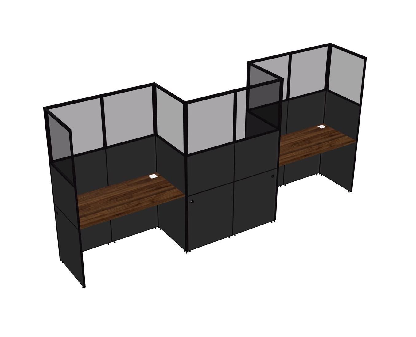 Columbia Walnut Rectangular Cubicle Workstations For 3 - Zigzag Formation