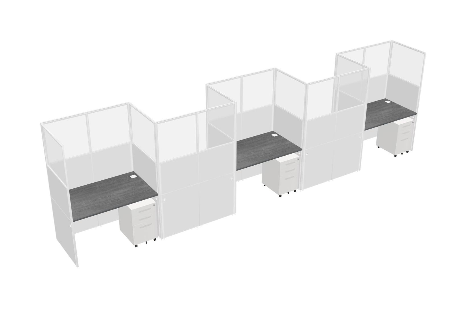 Grey Rectangular Cubicle Workstations For 5 - Zigzag Formation + White Metal Mobile Drawers
